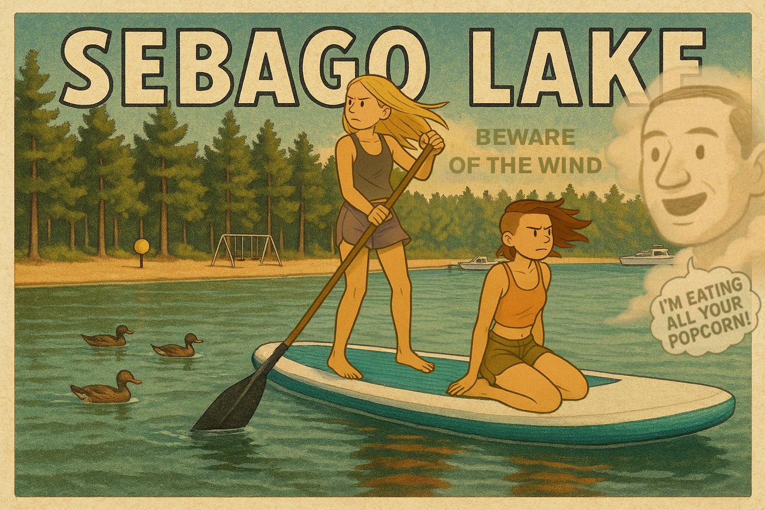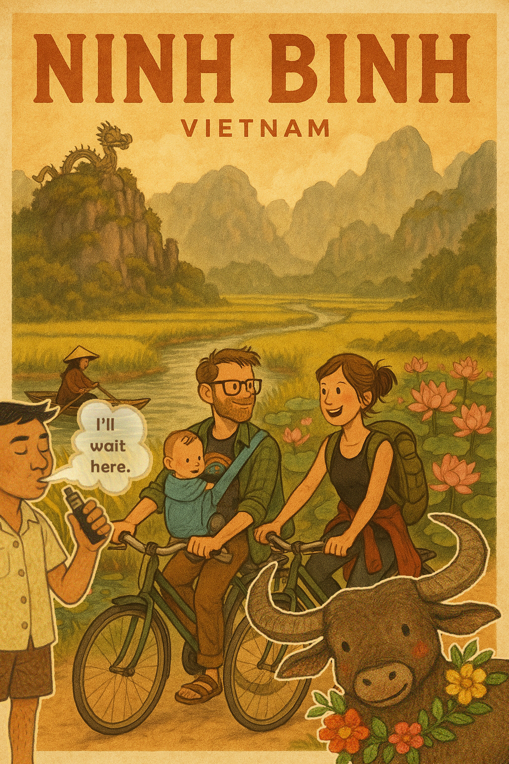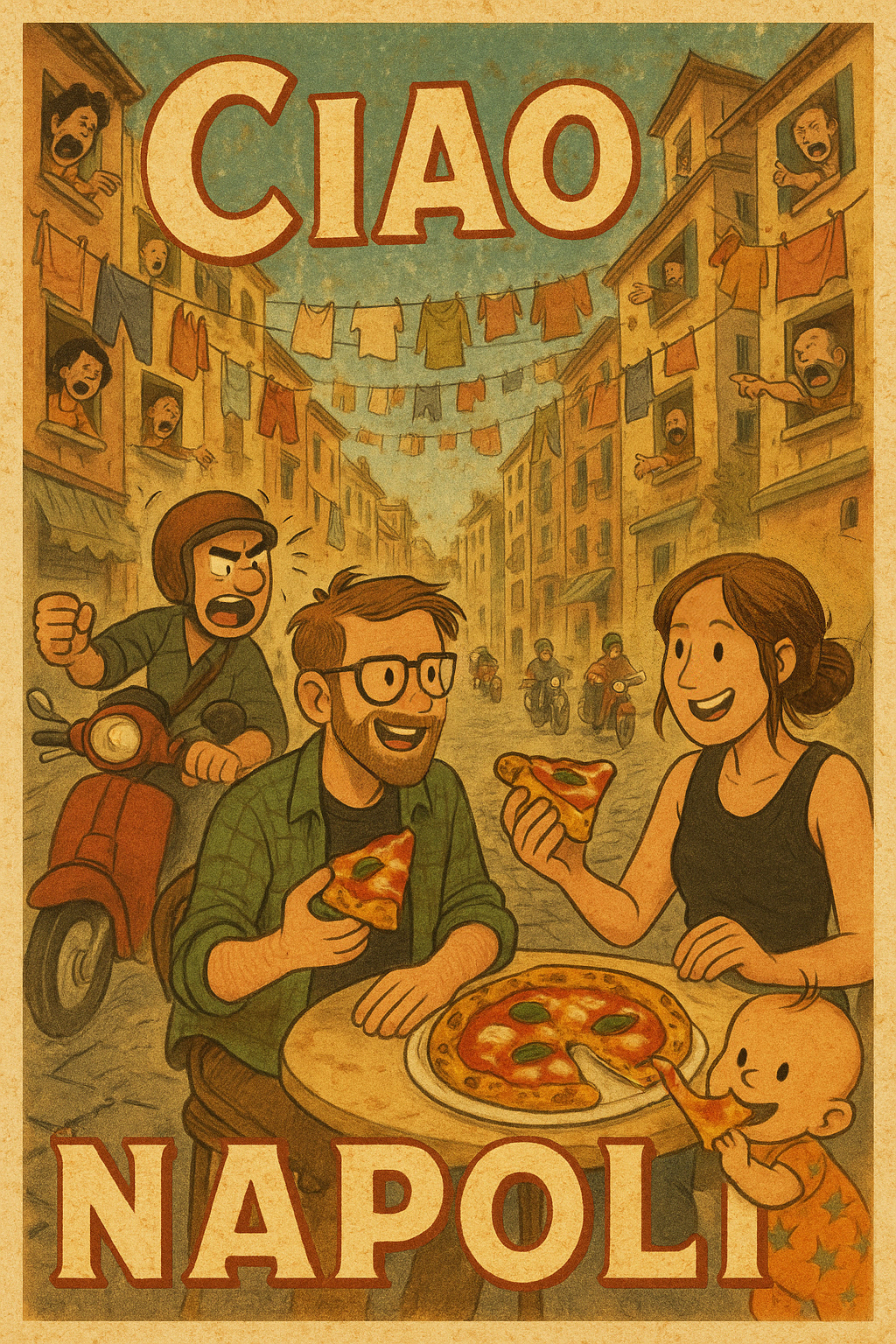 So I spent all my free time in November making 33 retro postcards full of inside jokes of us at all the places we went that year. I made each postcard using a combination of traditional drawing, digital drawing, Photoshop, and AI. Then I combined all the postcards in PS, adding a few coins and souvenirs the kids would recognize, and had it printed onto a 20x30" 1000 piece puzzle.