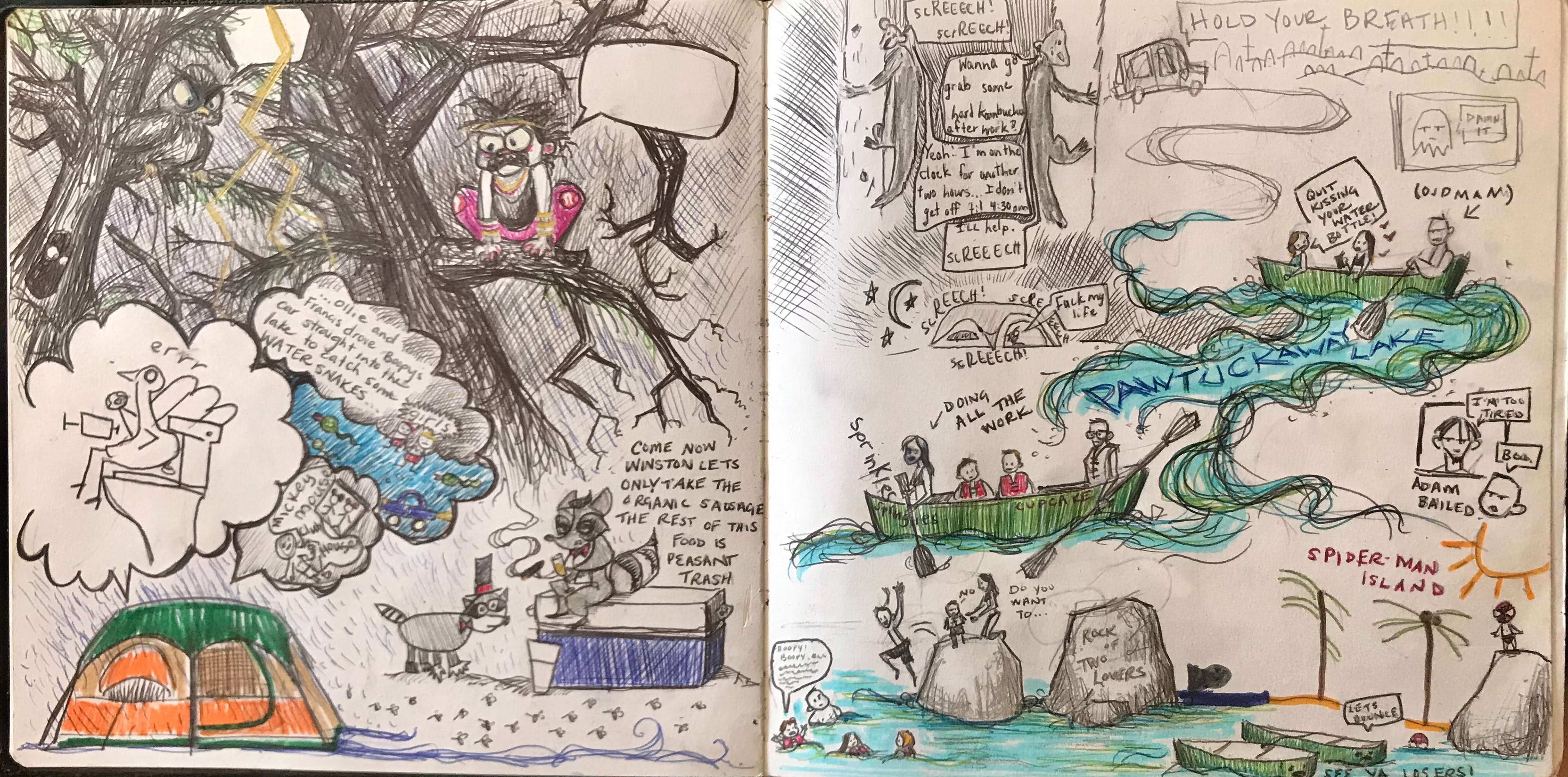 Every year we take the kids camping in the summer and bring along a family sketchbook that everyone draws in.