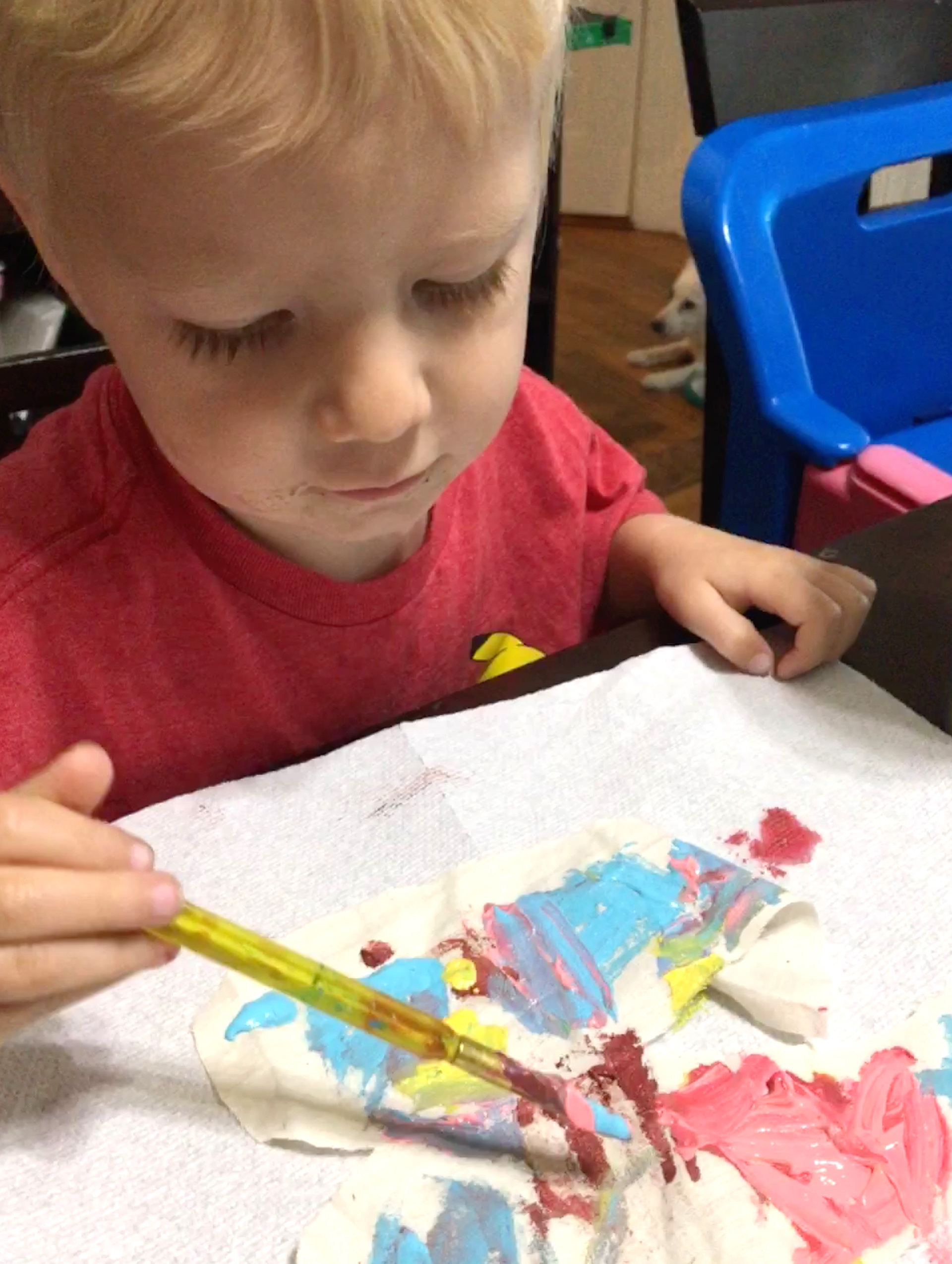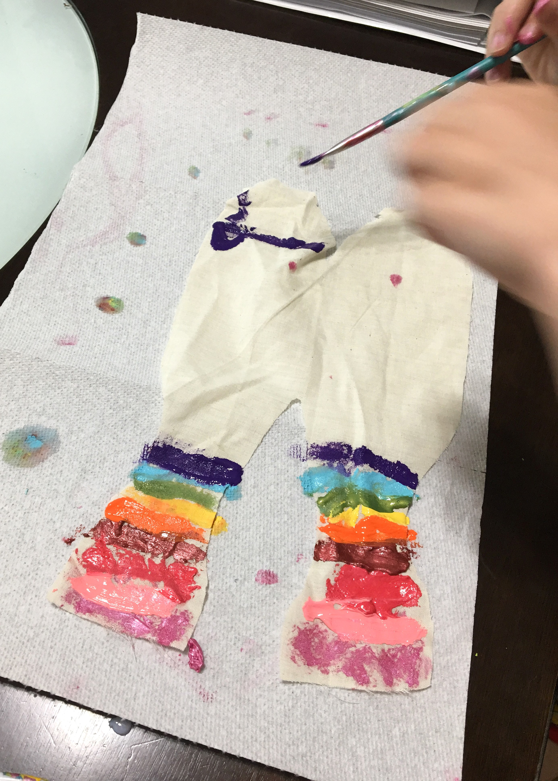 Celebrated Japan's Children Day by making some carp kites. First I cut the kids out a carp stencil from some canvas and they painted with acrylic.