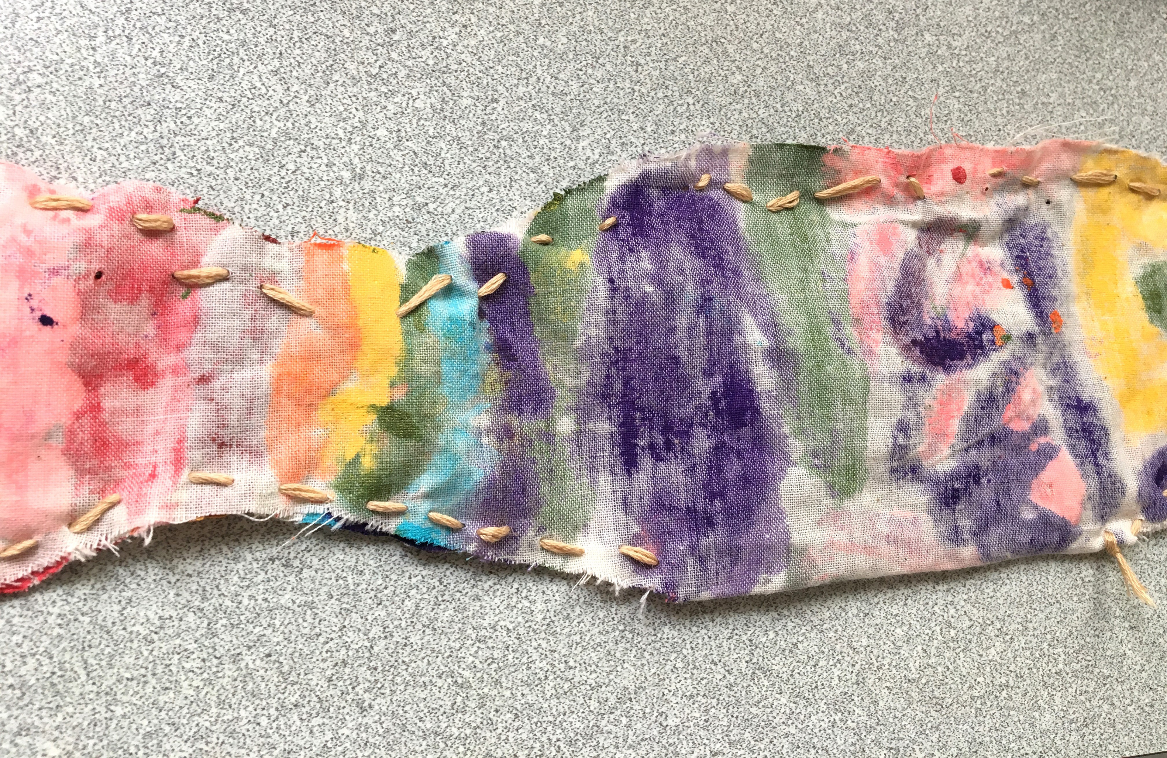 Then we folded it in half (inside out) and stitched it together with embroidery floss.