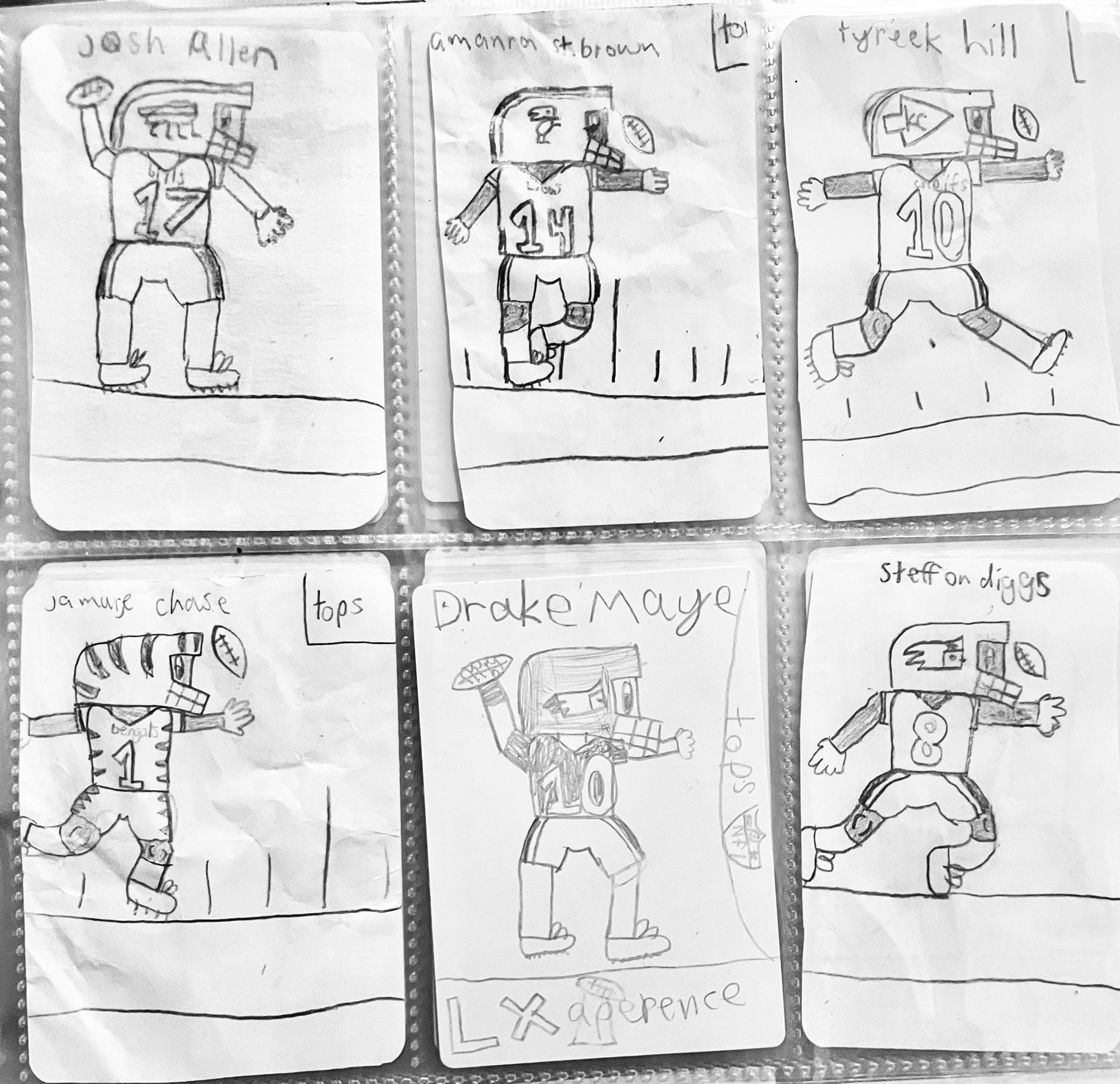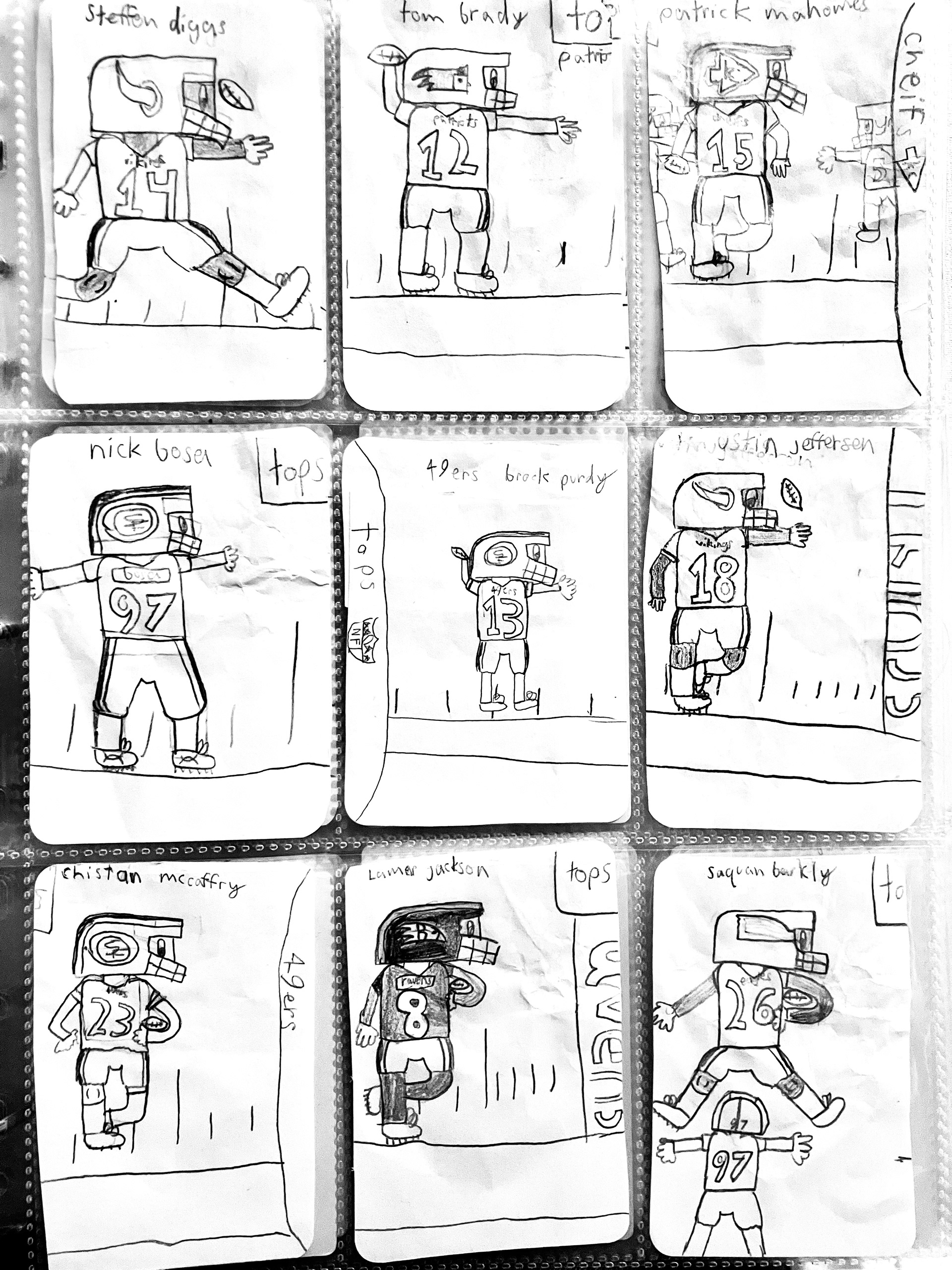 The boys got REALLY into making custom cards - so for Christmas we gifted them a whole bunch of blank pre-cut cardstock cards and holographic sticker paper to make "rare" cards. Here's Fran's current football deck.
