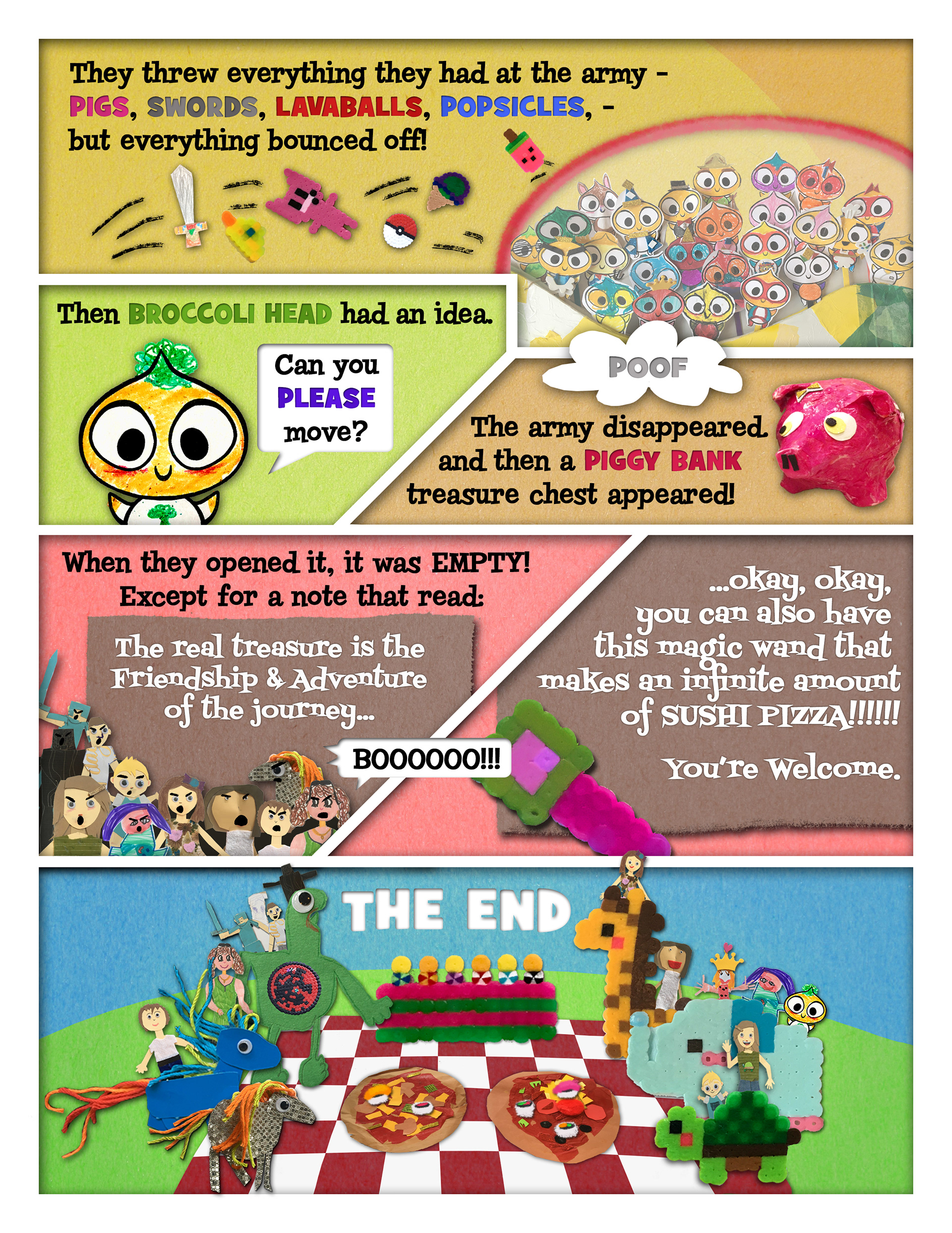 I had a wonderful experience teaching art to k-5 students as part of the Golden Chickpea Afterschool Program. At the end of the year, I wanted to give them a parting gift that captured our time together making art. So I photoshopped the hundreds of projects we had made that year into a comic book (the goofy text came from a Madlib I made that we filled out as a class).