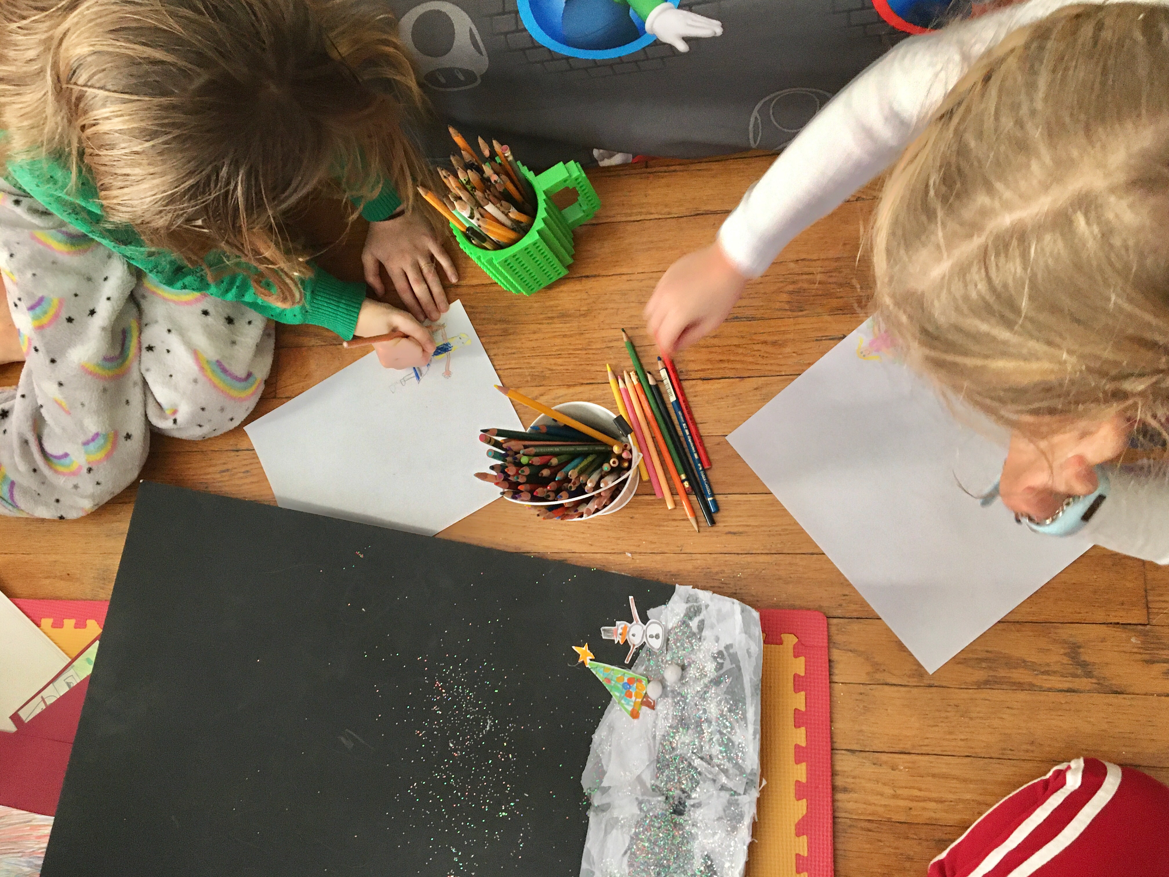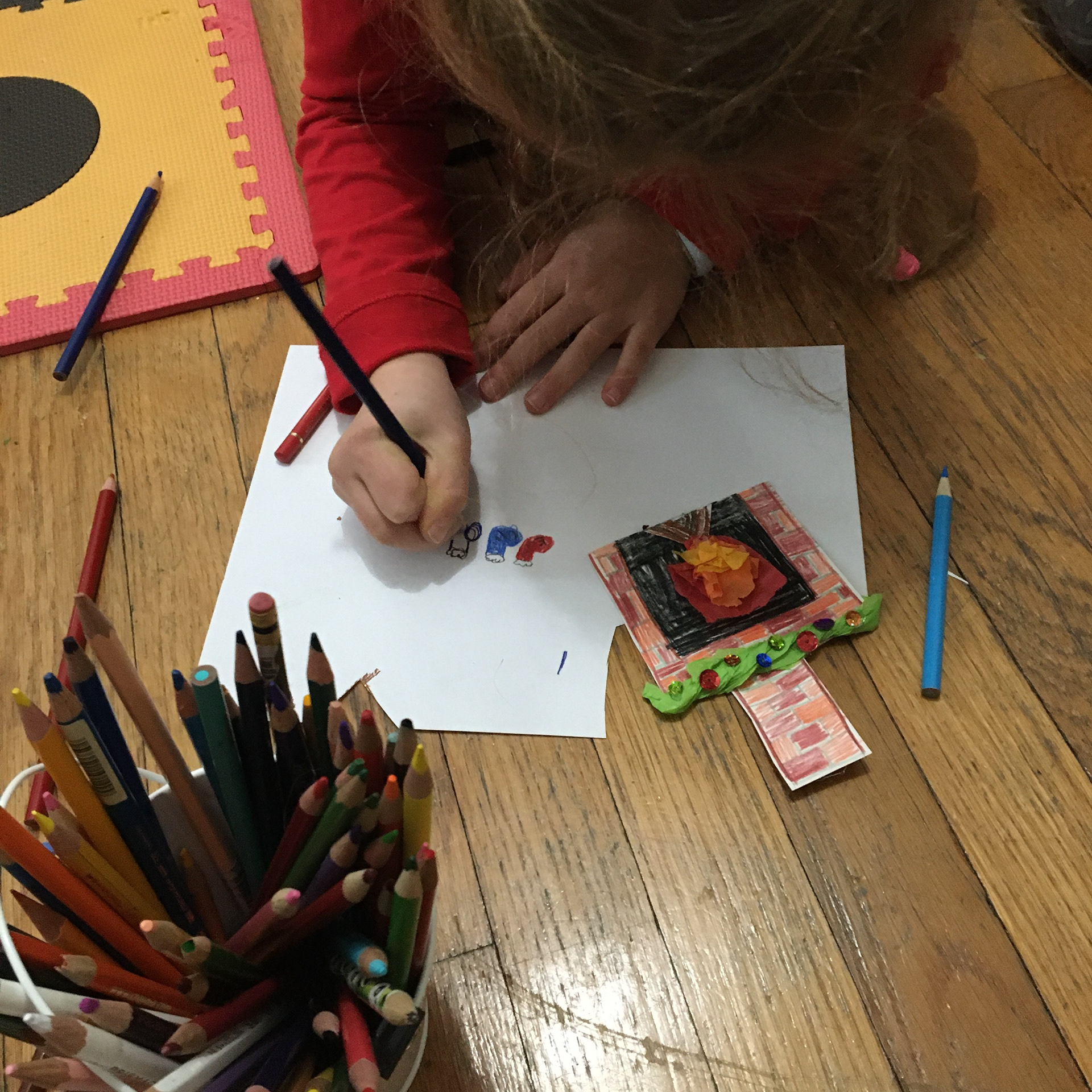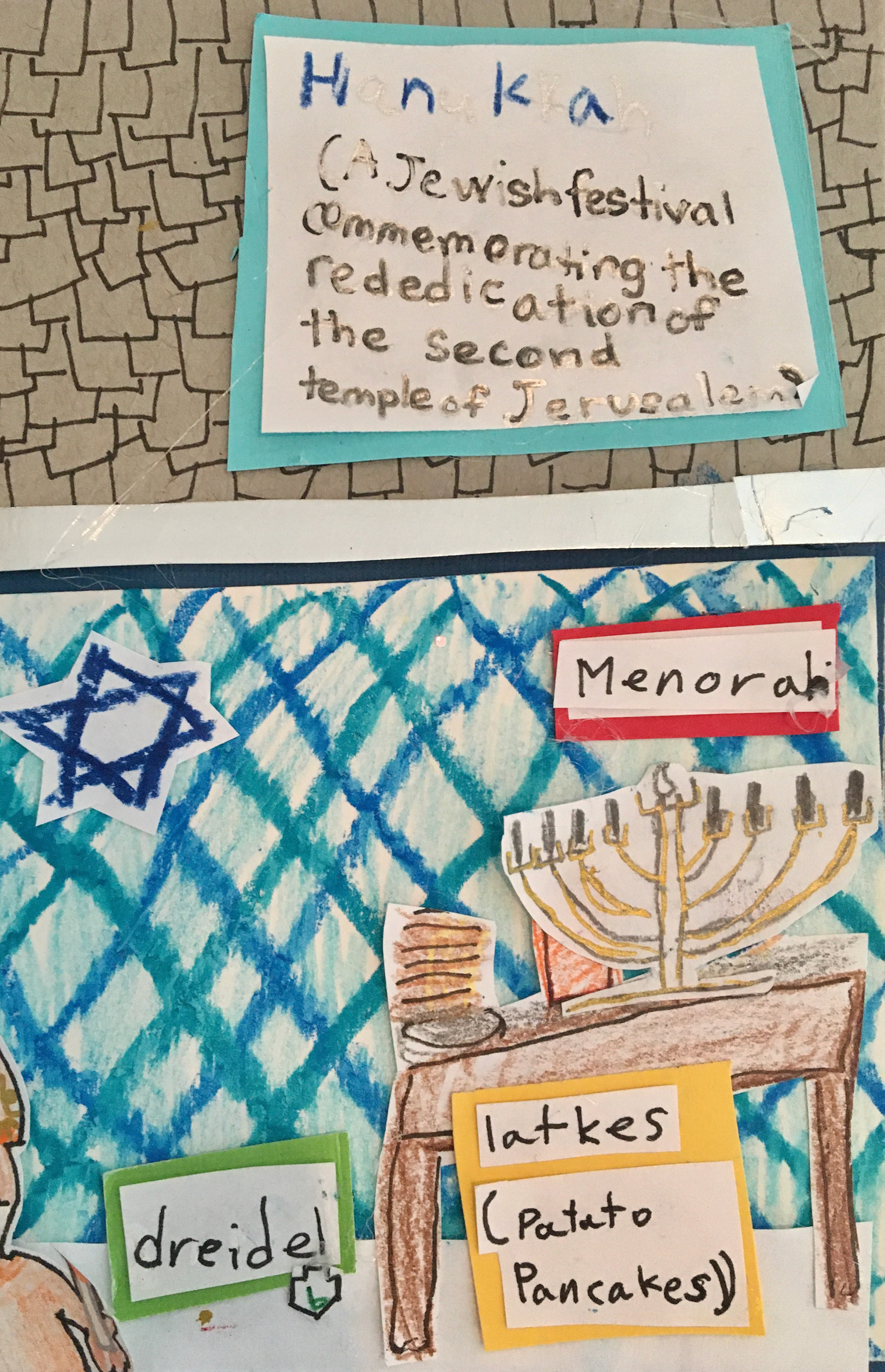 All four kids worked together on this piece of artwork depicting our families’ holidays traditions as well as different traditions and winter holidays from around the world.