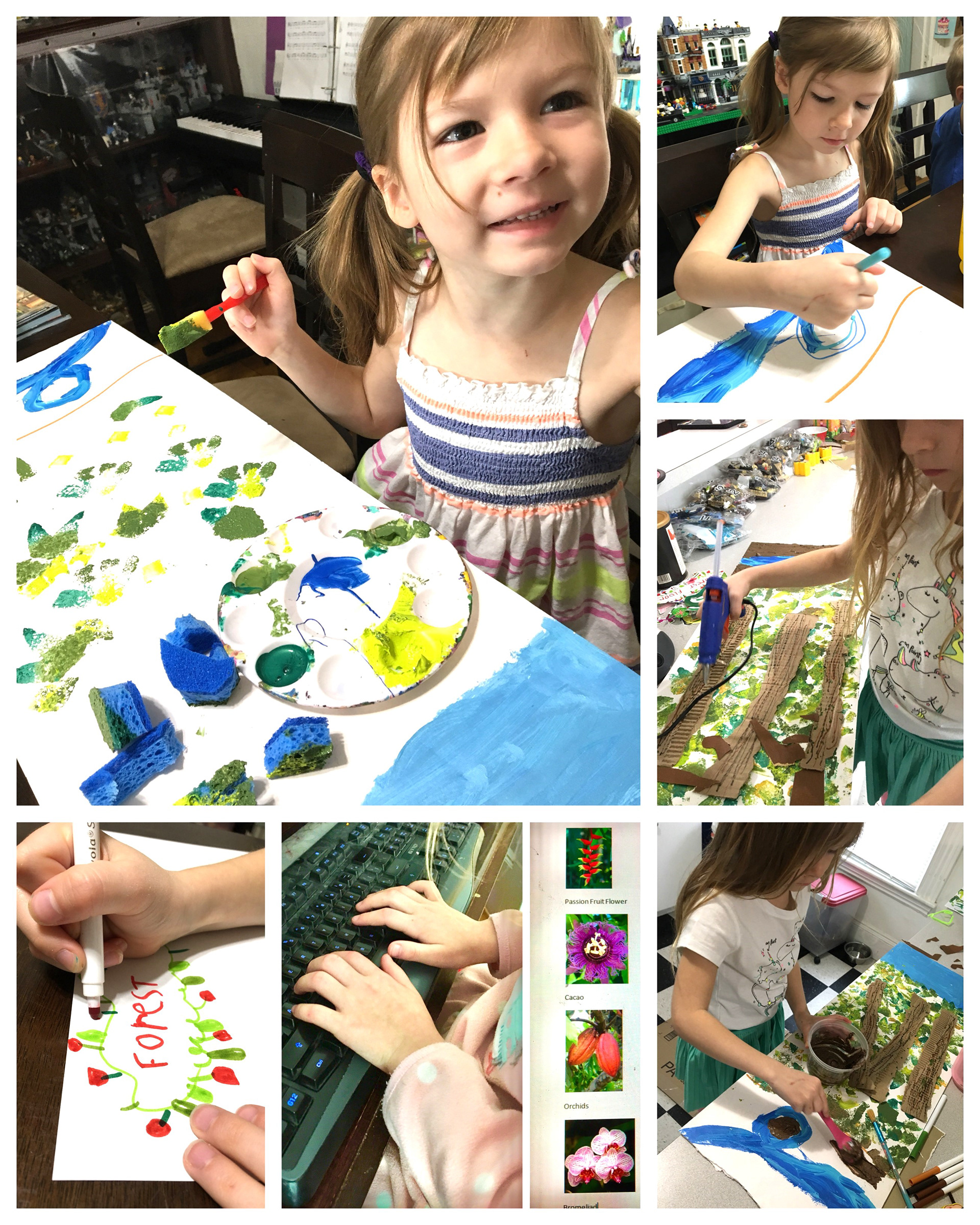 In kindergarten homeschooling, we did some research about the different layers of the rainforest and the life that lives in each layer.