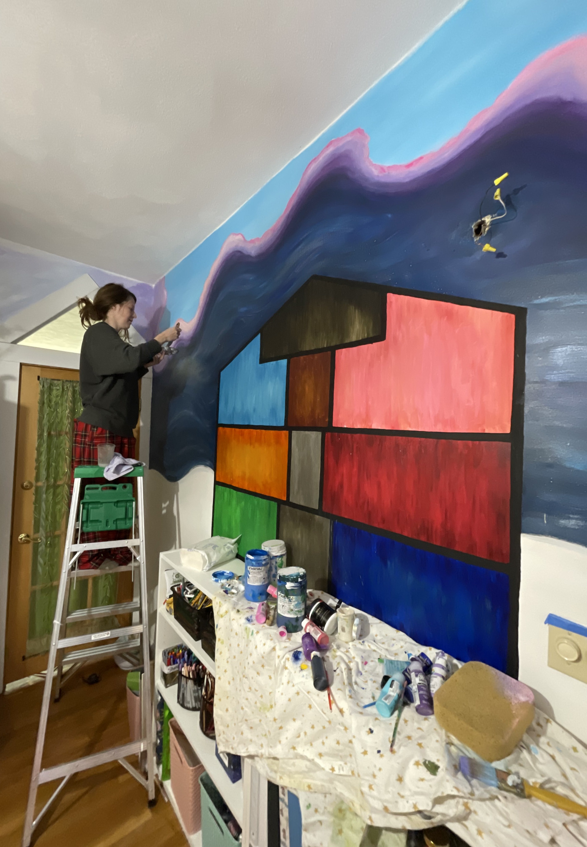 Got 2 teenage girls. For their bedroom they have requested "an ocean wall, a jungle bookshelf, a rainbow sky, and Taylor Swift's Lover house.